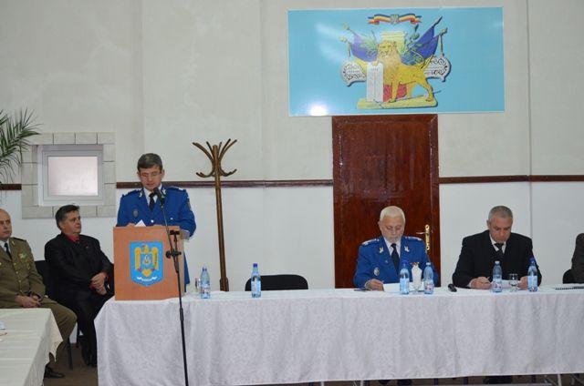 La sediul Inspectoratului de Jandarmi Judeţean Botoşani a avut loc astăzi, 19 decembrie 2013, evaluarea activităţii inspectoratului în anul 2013, în prezenţa domnului Costică Macaleţi – prefectul judeţului Botoşani, vicepreşedintelui Consiliului Judeţean – domnul Gheorghe Sorescu, reprezentantului Inspectoratului General al Jandarmeriei Române – domnul colonel Aurel Moise şi a altor şefi ai instituţiilor publice locale.