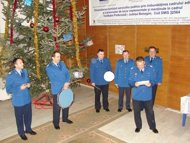 Prefectul Costică Macaleţi şi vicepreşedintele Consiliului Judeţean, Gheorghe Sorescu au primit în dimineaţa zilei de 30 decembrie un grup de urători plini de culoare prin versurile personalizate compuse special pentru acest moment. Reprezentanţii jandarmilor botoşăneni, conduşi chiar de către colonelul Constantin Moroşanu au executat o urătură menită să înveselească botoşănenii de la conducerea judeţului şi salariaţii din Prefectură. În uniforme, înarmaţi cu tobe şi clopoţei, în loc de bastoane şi spray-uri lacrimogene, urătorii au amintit de iarna grea de anul trecut dar şi de muştruluiala pe care prefectul judeţului o mai face uneori directorilor de instituţii. Una dintre mobilizările anului a fost cea a campaniei „Let’s do it Romania!”.