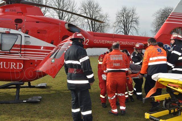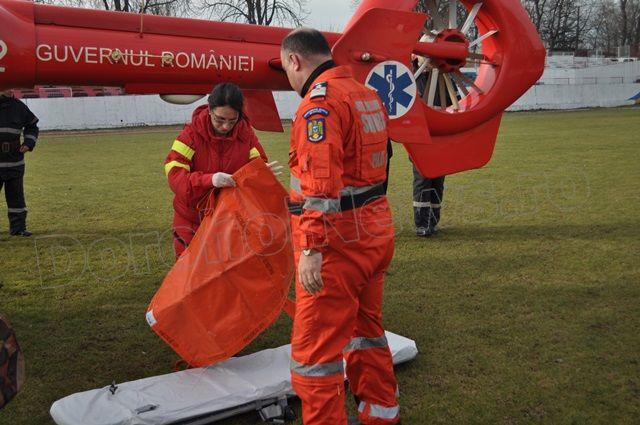În jurul orei 11:30, Gheorghe R. a fost adus de la Spitalul Municipal Dorohoi de către o ambulanță, sub asistență medicală de specialitate și transferat în elicopterul SMURD. După efectuarea procedurilor de siguranță elicopterul a decolat în jurul orei 11:45. (Andrei B.)