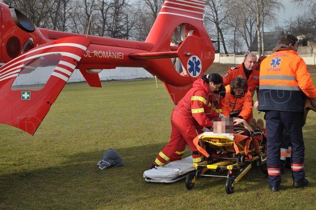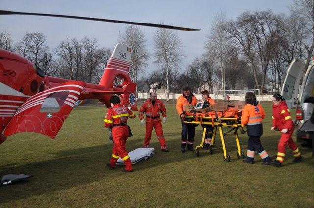 S-a solicitat transferul la Spitalul Parhon din Iași, de unde a primit acceptul și s-a trimis către Dorohoi un elicopter SMURD pentru a-l transporta.