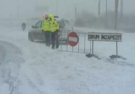 Din cauza viscolului, sunt închise circulaţiei trei drumuri naţionale, 16 drumuri judeţene şi 11 drumuri comunale, astfel: