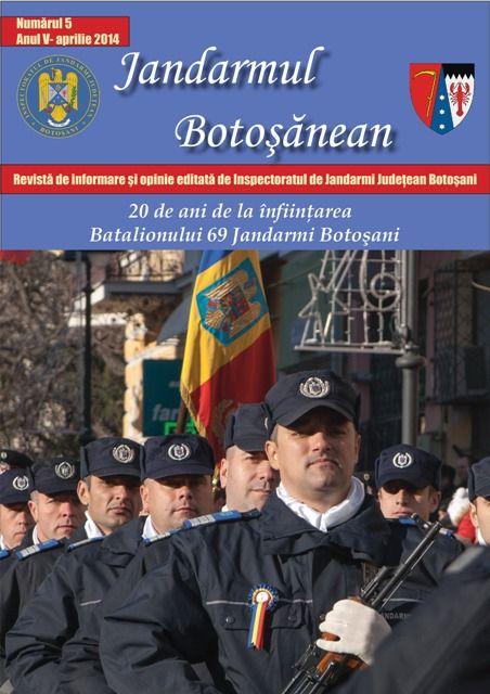 Printre activităţile organizate şi desfăşurate pentru aniversarea a 164 de ani de la înfiinţarea Jandarmeriei Române, pe care jandarmii o sărbătoresc în data de 3 aprilie 2014, se înscrie tipărirea unui nou număr al revistei „Jandarmul Botoşănean”.