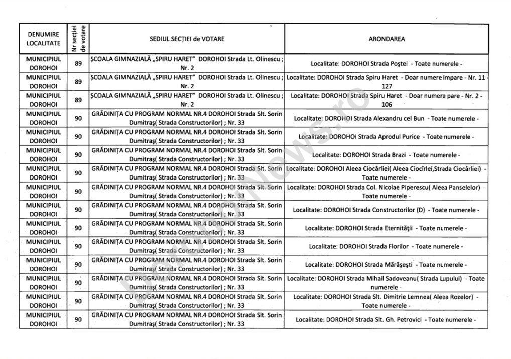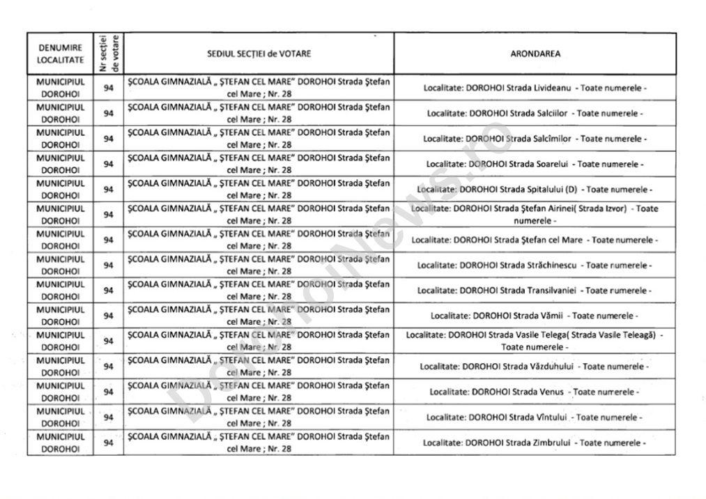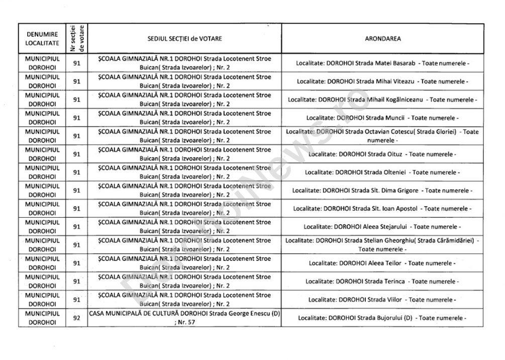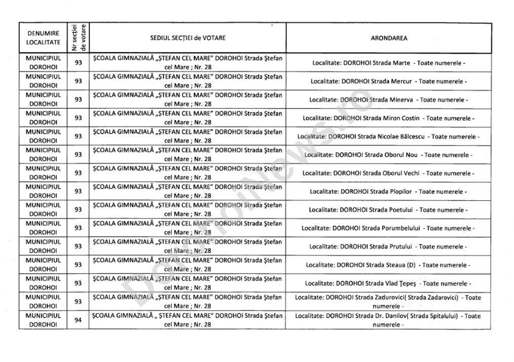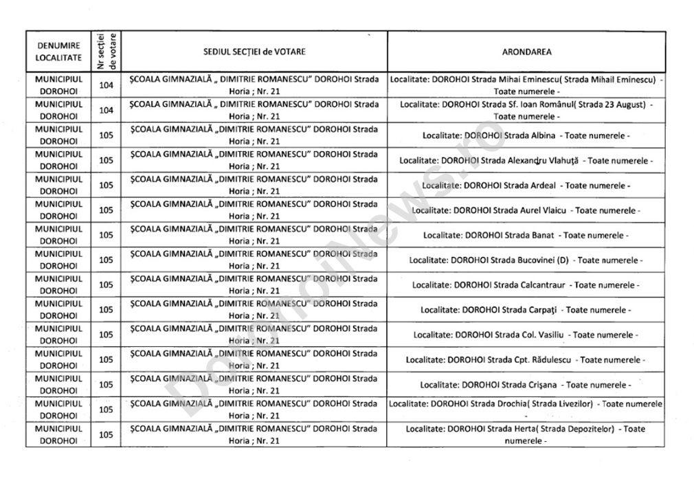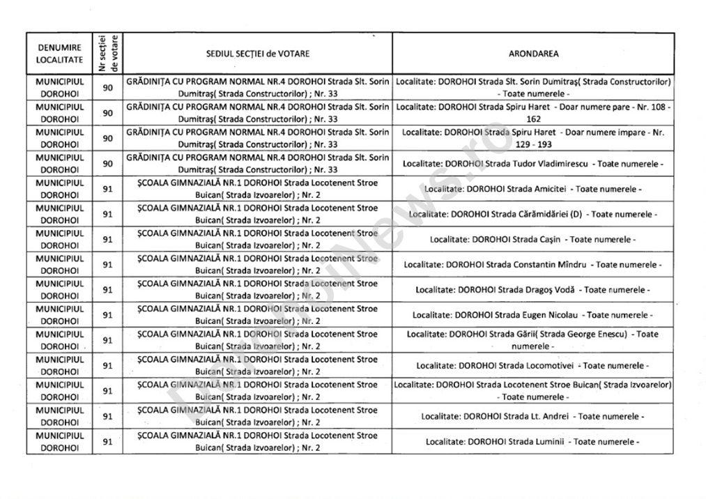 Vezi arondarea străzilor din Dorohoi la secțiile de votare în format PDF, Click AICI!