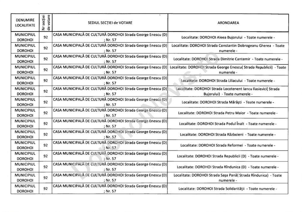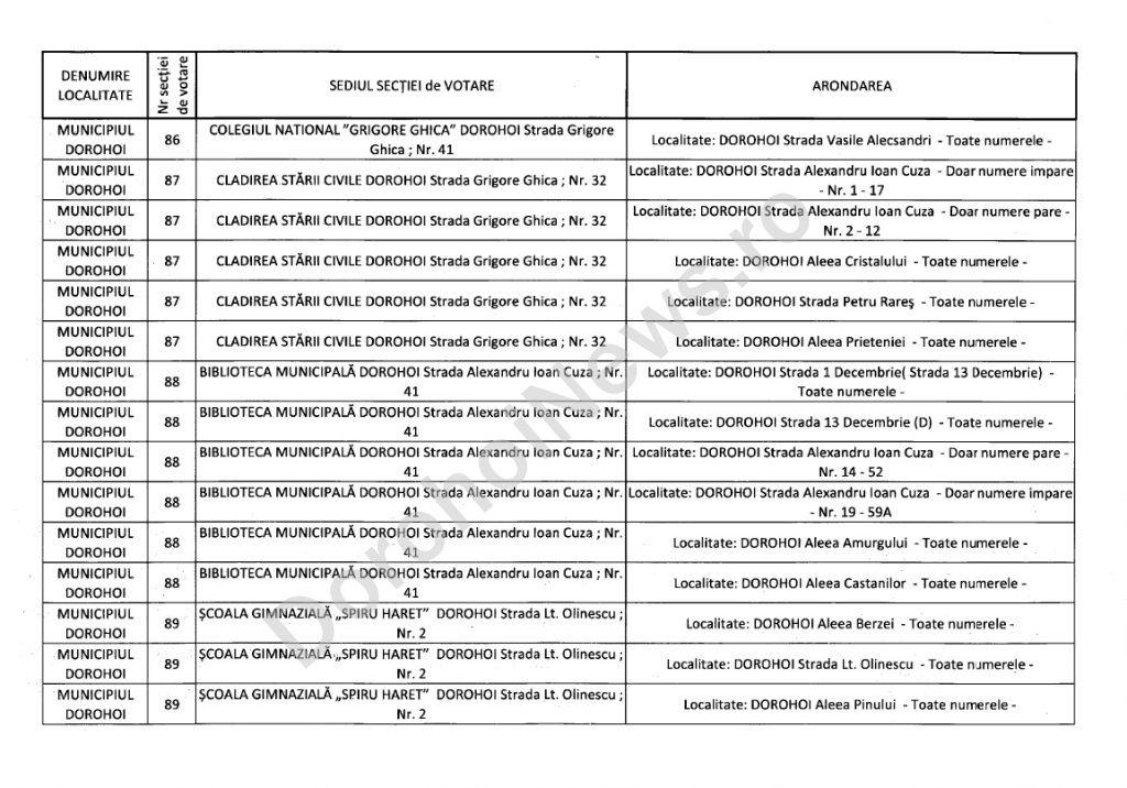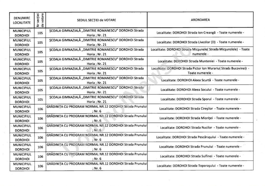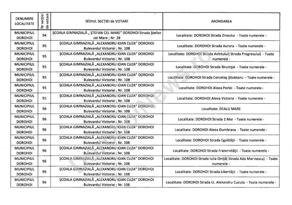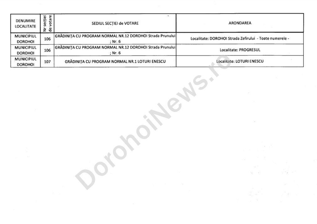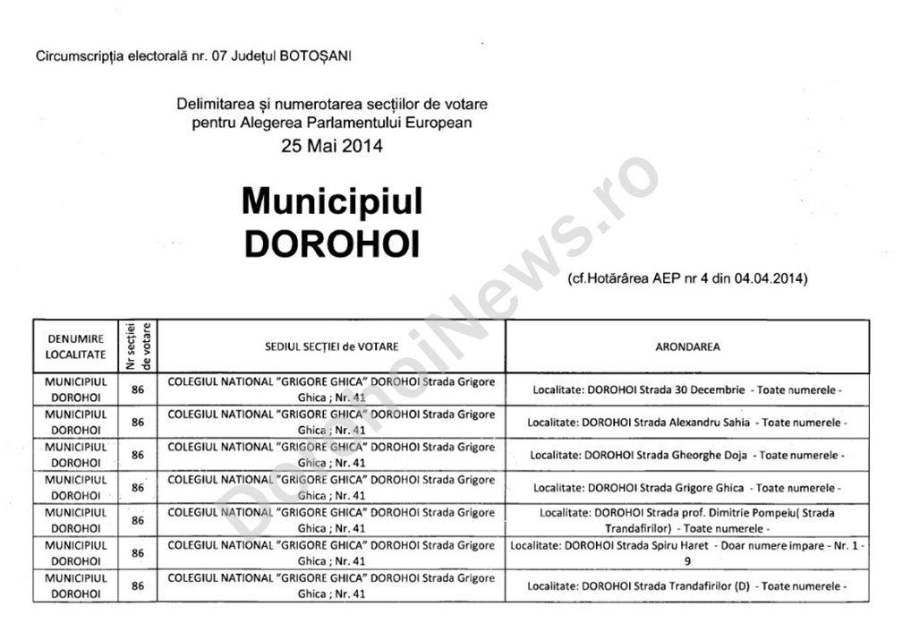 Vezi arondarea străzilor din Dorohoi la secțiile de votare în format PDF, Click AICI!