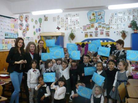 Programul de activităţi s-a bazat, de asemenea, şi pe aplicaţii practice, de confecţionare a steagului Uniunii Europene, precum şi pe testarea cunoştinţelor despre Uniunea Europeană, în cadrul unui concurs interactiv.