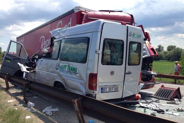 Din primele informaţii, accidentul a avut loc după ce microbuzul firmei Faby Trans s-a ciocnit cu un autotren, şoferul microbuzului, pierzând controlul volanului într-o curbă la dreapta. În urma impactului extrem de violent nouă persoane au fost rănite, iar o tânără de 29 de ani a decedat.