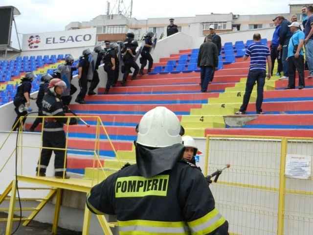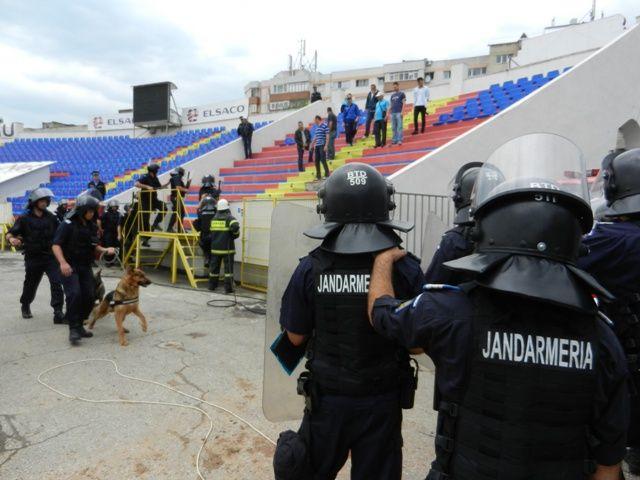 Activitățile executate astăzi au scopul de a pregăti efectivele de jandarmi și  ale celorlalte  forțe cu care cooperează, în vederea asigurării unui climat civilizat de ordine și siguranță publică în incinta stadionului și în imediata apropiere a acestuia.