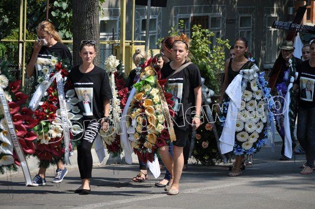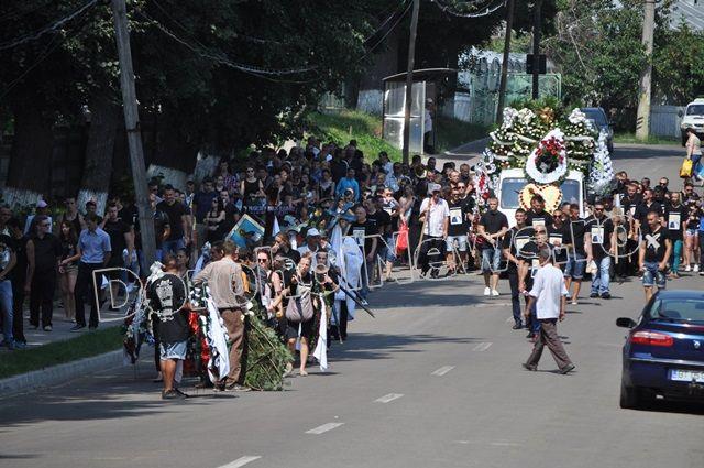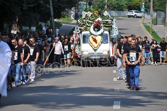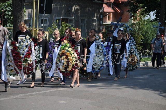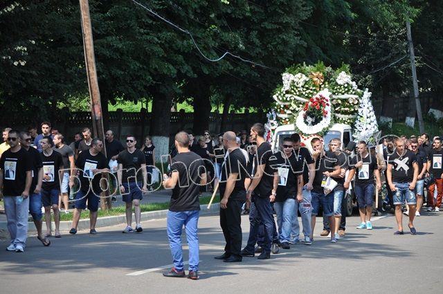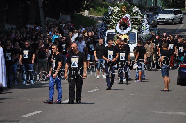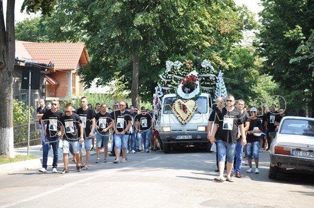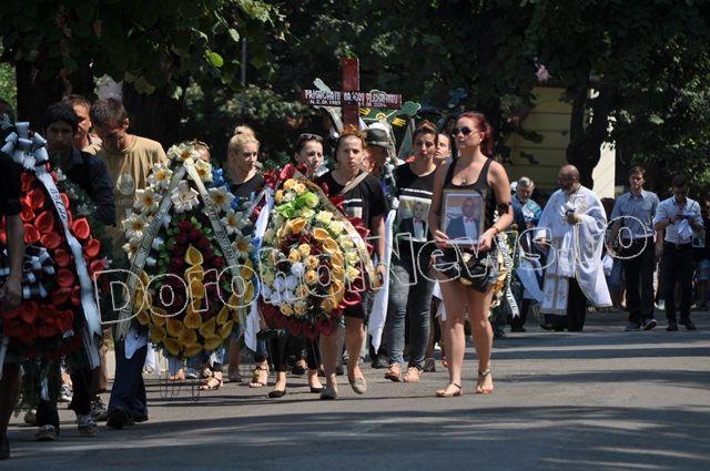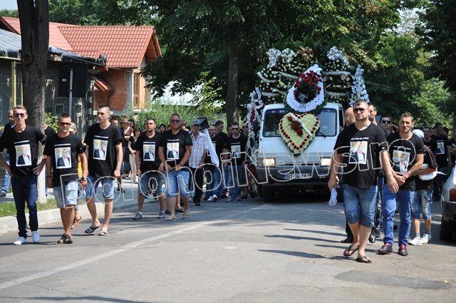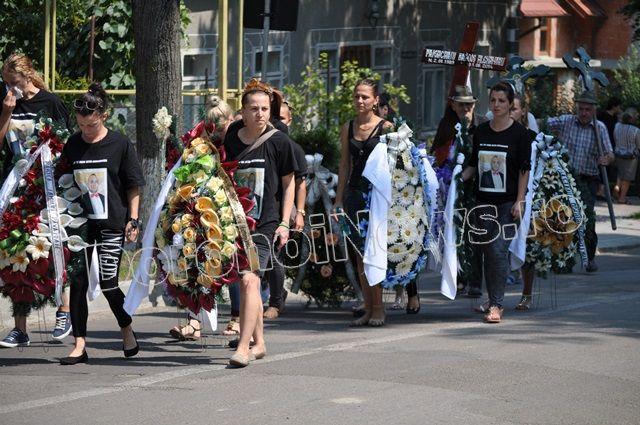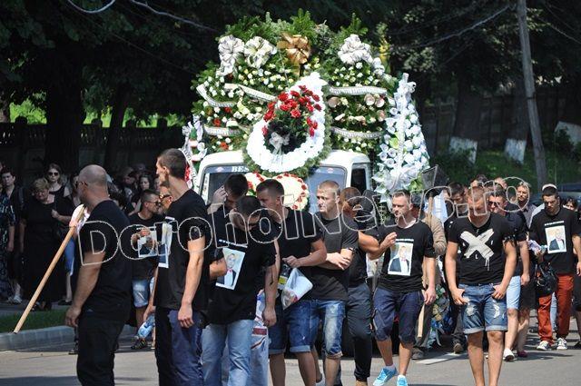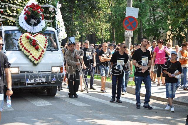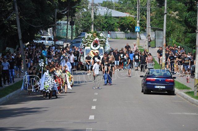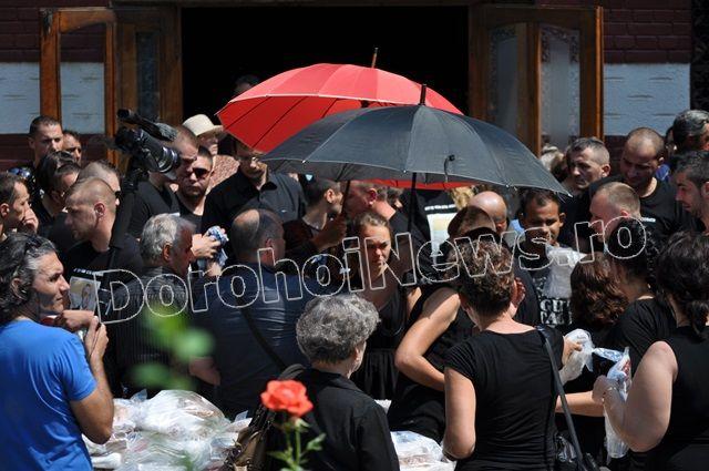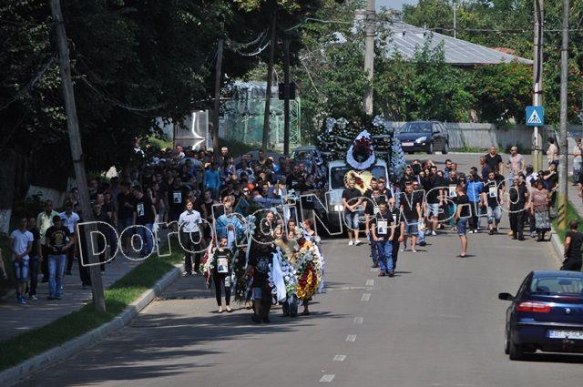 Sute de oameni, rude, prieteni și colegi cu tricouri negre inscripționate cu poza lui dar și simpli dorohoieni s-au adunat în curtea Catedralei din Dorohoi pentru a-și lua rămas bun. Lacrimile și strigătele de durere sunt înăbușite de melodiile triste ale fanfarei.