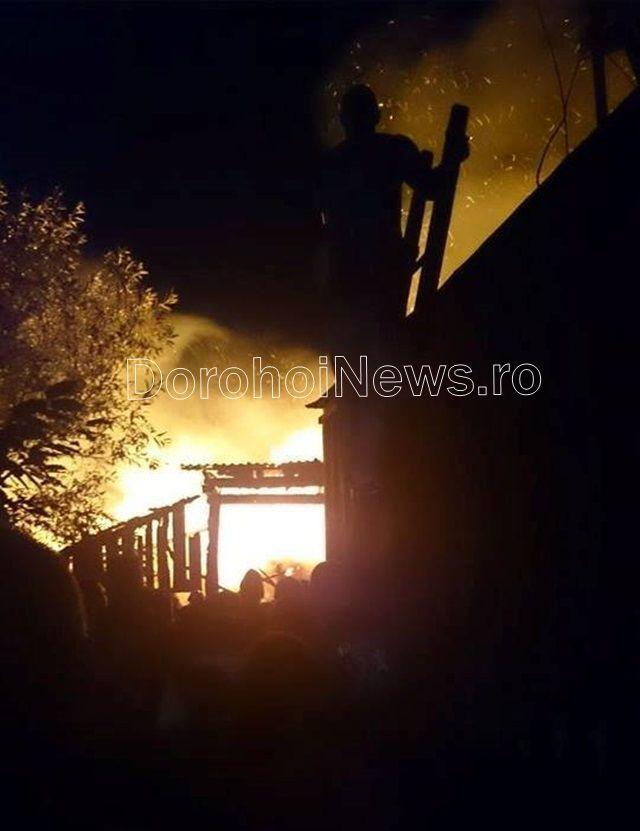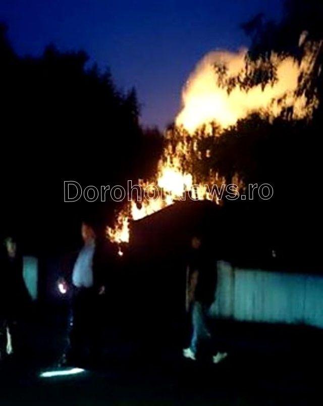 Panică în această seară în comuna Dersca. O anexă gospodărească a fost cuprinsă de flăcări și doar o minune a făcut ca focul să nu se extindă și la casele din apropiere.