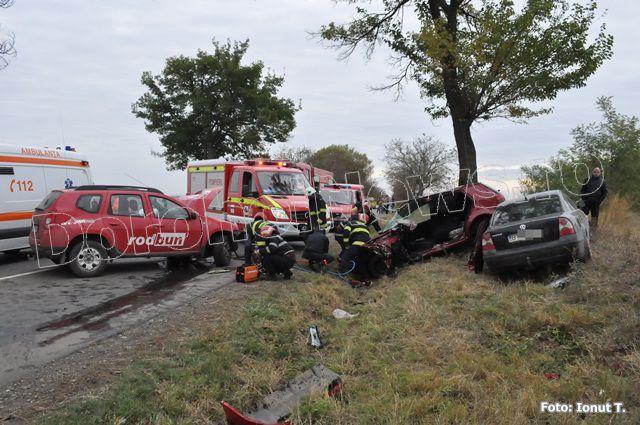 În urma impactului, autoturismul Volkswagen Golf a fost proiectat într-un copac, iar un al treilea autoturism, Volkswagen Passat, care circula în spatele VW Golf, a ajuns și el în decor.