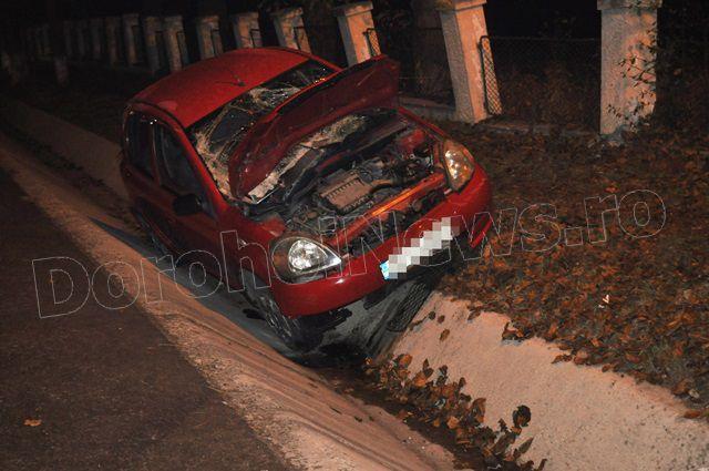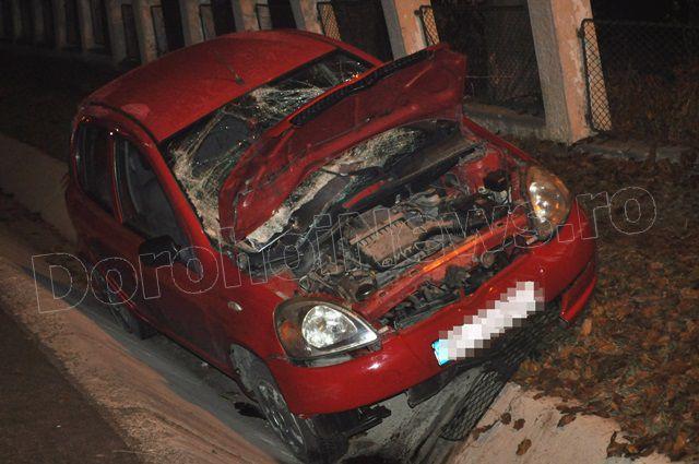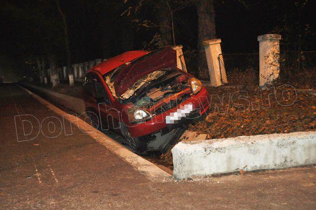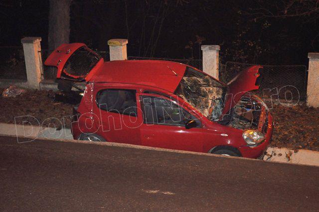Din primele cercetări se pare că șoferul unui autoturism Toyota Yaris circula dinspre Botoșani spre Dorohoi, a pierdut controlul volanului, iar din cauza carosabilului umed nu a putut redresa, a lovit un cap de pot și s-a oprit în șanțul din dreapta drumului. La volanul autoturismului se afla Costinel O. în vârstă de 18 ani, iar pe scaunul din dreapta Raluca V. în vârstă de 17 ani, ambii scăpând nevătămați.