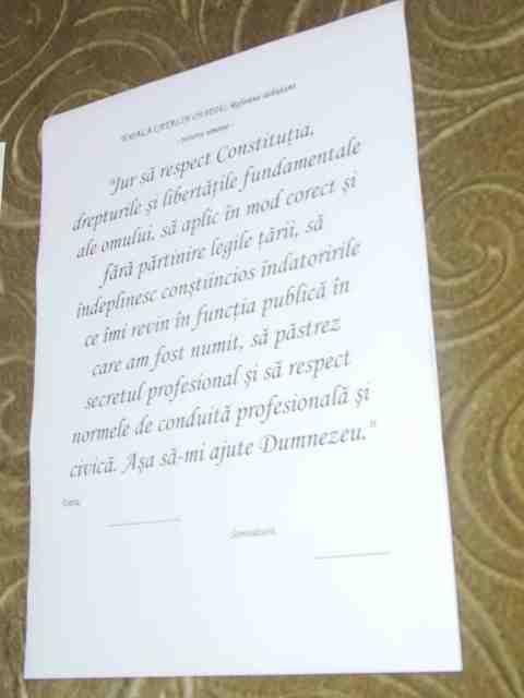 La numirea în funcție, în temeiul art. 62, alin. 6, din Legea nr. 188/1999 privind statutul funcționarilor publici, funcționarii și-au luat angajametul să respecte Constituția, drepturile și libertățile fundamentale ale omului, să aplice în mod corect și fără părtinire legile țării, să îndeplinească în mod conștiincios îndatoririle ce le revin în exercitarea funcției publice, să respecte secretul profesional și normele de conduită profesională și civică.