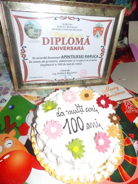 Duminică, 16 noiembrie, pragul casei sale a fost trecut de primarul comunei Ibănești, d-nul ing. Romică Magopeț. Însoțit de membri ai administrației locale (viceprimar Lavric Săvel,  secretar Doroftea Mihai, asistent social Aboghioaie Petru) domnul primar a ținut neapărat să fie alături de doamna Raruca în aceste clipe unice, pentru a-i transmite un gând bun și a-i oferi un buchet de flori, un tort, o diplomă aniversară și un cadou în bani.