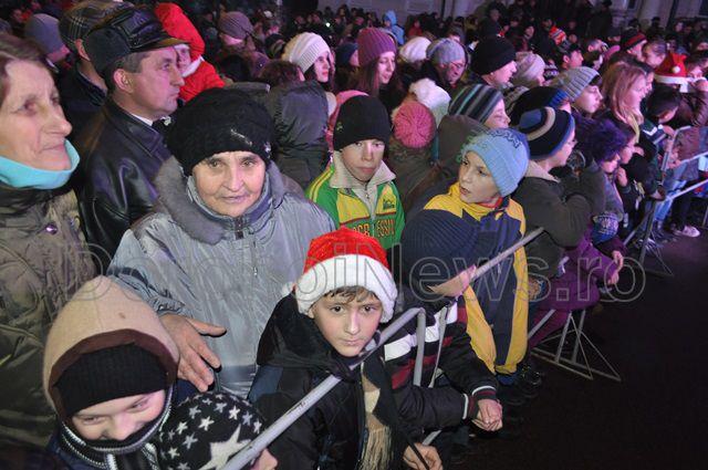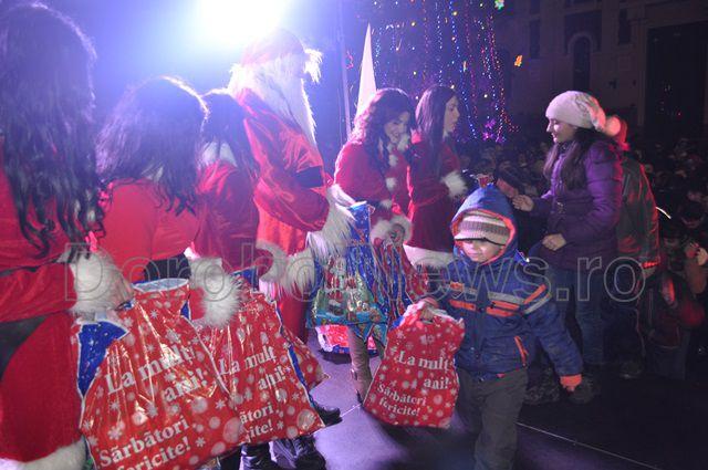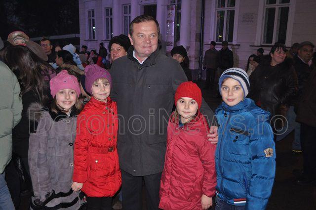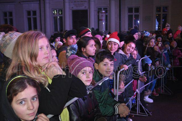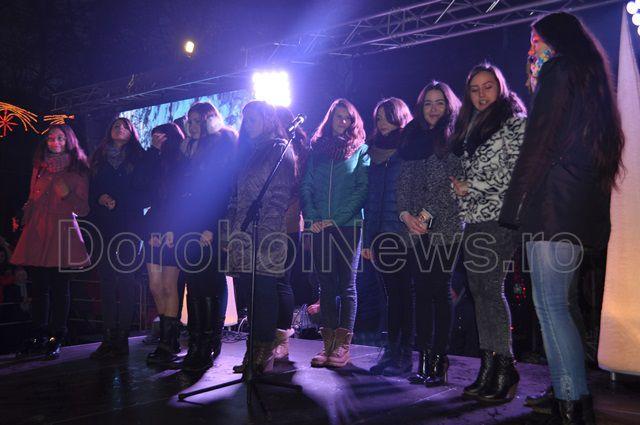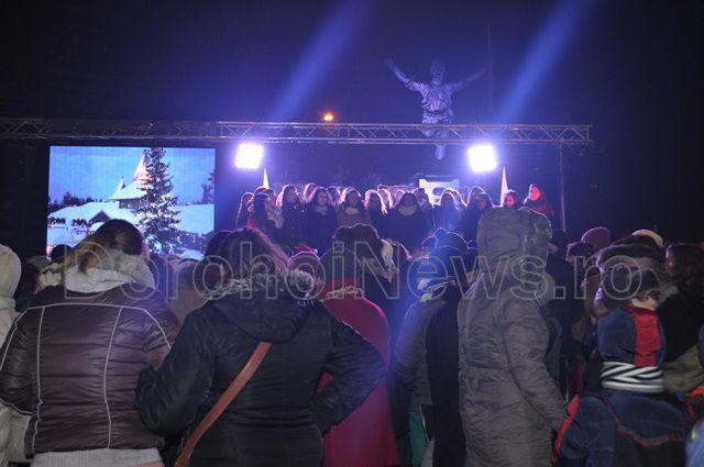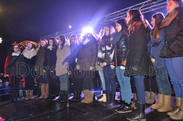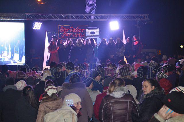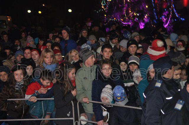 Marea surpriză pregătită de administrația locală a fost un spectacol oferit de corurile Liceului „Regina Maria”, Colegiului Național „Grigore Ghica” și a corului George Enescu, condus de doamna Gherghina Gușulei. După concertul de colinde s-a inaugurat iluminatul ornamental al Pietonalului „Grigore Ghica” și a clădirii Primăriei vechi cu un spectacol de lumină care va funcționa permanent începând din această seară. (Andrei B.)