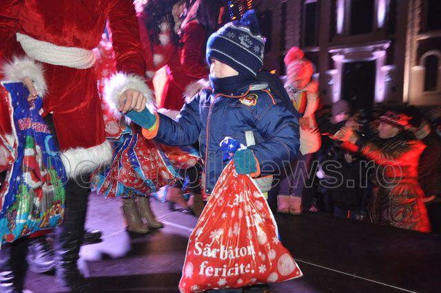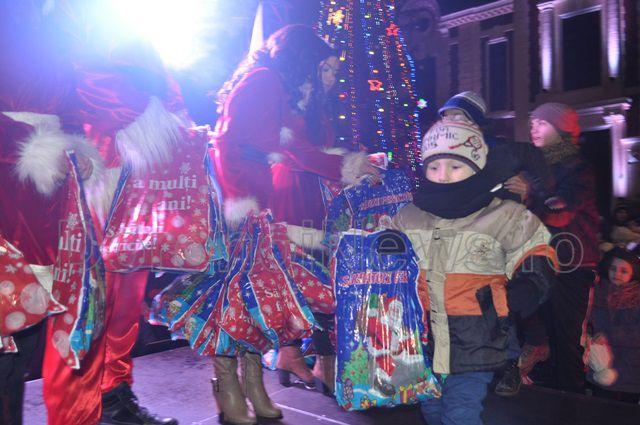 La bradul montat în fața Primăriei vechi, vineri, 19 decembrie 2014, în jurul orei 17:00, sute de cadouri au fost împărţite copiilor. Moșul însoțit de cinci Crăciunițe și ajutat de primarul Dorin Alexandrescu au împărțit cadouri copiilor prezenți.