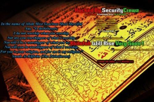 Acest gest este revendicat de hackerii de la „Security Crewe", iar in partea de jos a site-ului apare mesajul „Khilafah vill rise very soon!"