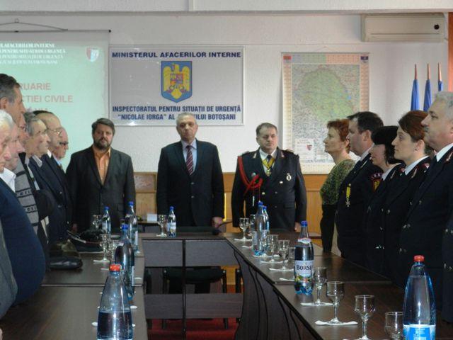 Angajaţii Inspectoratului pentru Situaţii de Urgenţă “Nicolae Iorga” al Judeţului Botoşani au marcat astăzi 82 de ani de la înfiinţarea Protecţiei Civile în România.