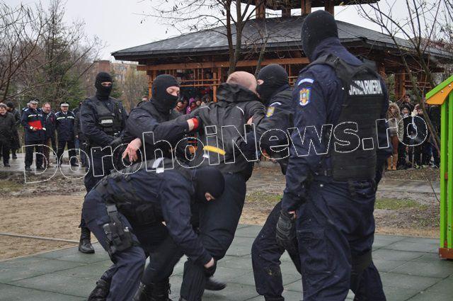 După manifestările festive ocazionate de sărbătorirea Zilei Jandarmeriei Române, care au avut loc la sediul I.J.J. Botoșani vineri, 03 aprilie 2015, jandarmii au organizat ateliere de prezentare a tehnicii și mijloacelor din dotare în parcul Cholet din municipiul Dorohoi.
