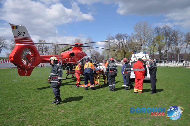 Aparatul de zbor a aterizat pe stadionul „1 Mai” din Dorohoi, în jurul orei 11:50, de unde l-a preluat pe bărbat, pentru a-l transporta la o clinica din Iași.