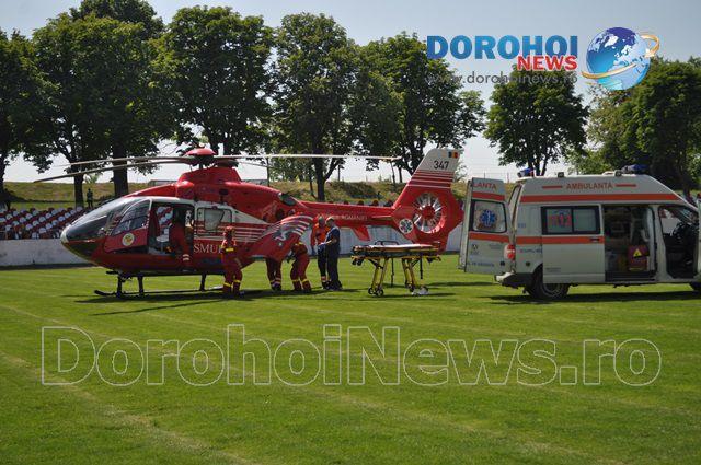 O femeie în vârstă de 58 de ani, din Dorohoi, a fost transportată sâmbătă, 23 mai 2015, la Iași cu un elicopter SMURD.