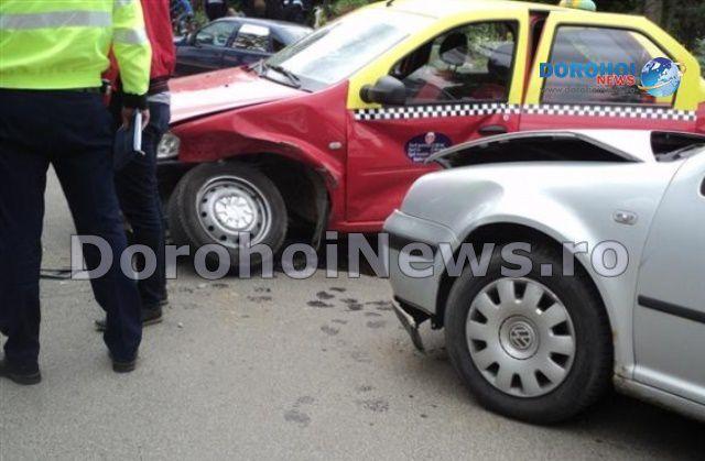 Din primele cercetări se pare că un autoturism, în regim de taxi, marca Dacia Logan, condus de către Relu D., de 44 de ani, din Dorohoi, care se deplasa pe strada Poștei și avea un client pe bancheta din spate, pe Paula A., de 48 de ani, din Dorohoi, s-a ciocnit cu un Volkswagen, la volanul căruia se afla Laurențiu C., în vârstă de 36 de ani, din Pașcani. În urma impactului două persoane au fost preluate de ambulanță și duse la spital pentru investigații.