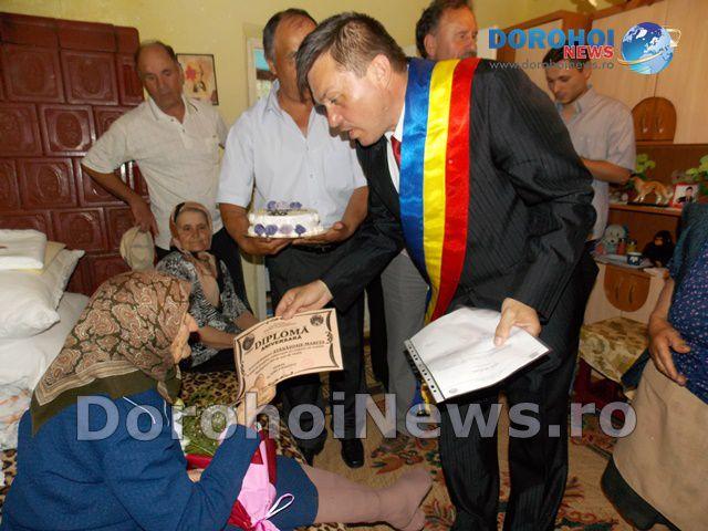 Însoțit de membri ai administrației locale (viceprimar Lavric Săvel, secretar Doroftea Mihai) și consilieri locali, dl. primar a vizitat-o pe MARIȚA ATĂNĂSOAIE pentru a o felicita și a-i oferi un buchet de flori, un tort și un cadou în bani.