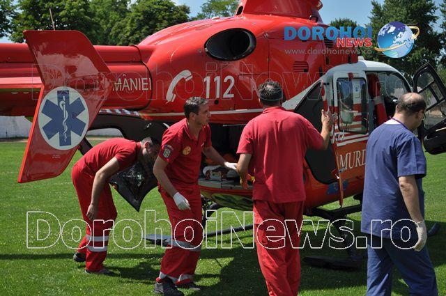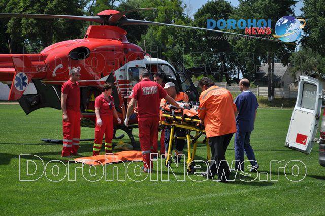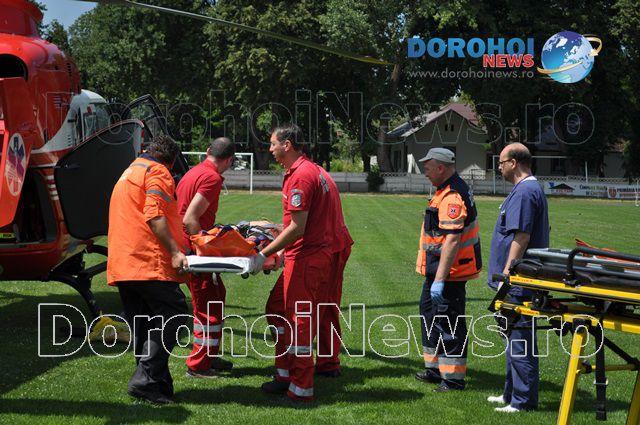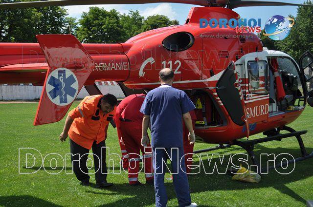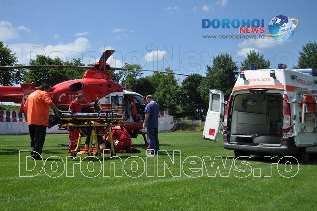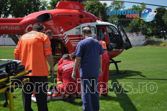 Aparatul de zbor a aterizat pe stadionul „1 Mai” din Dorohoi, în jurul orei 14:00, de unde l-a preluat pe bărbat, pentru a-l transporta la o clinica din Iași. După efectuarea procedurilor de siguranță elicopterul a decolat în jurul orei 14:25. (Andrei B.)