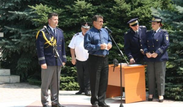 În cadrul şedinţei festive, şeful S.T.P.F. Botoşani, comisarul şef Daniel Chira a dat citire ordinelor de avansare la termen şi înainte de termen a ofiţerilor şi agenţilor, a înmânat diplomele de merit şi a felicitat întregul personal pentru activitatea depusă.