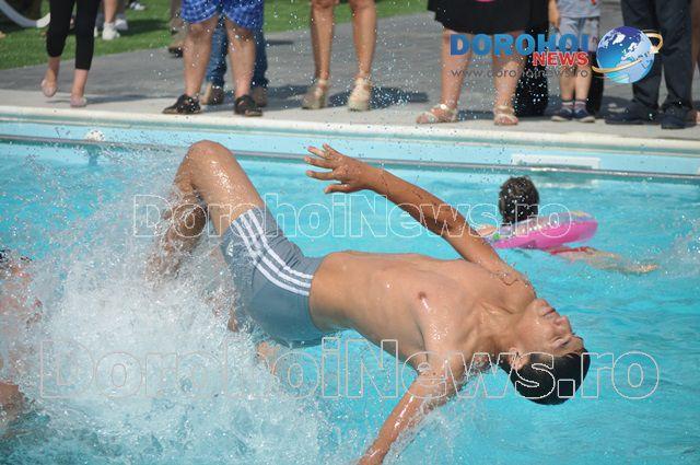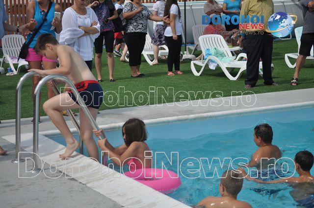Zeci de dorohoieni au luat cu asalt piscina semi-olimpică sâmbătă, 1 august 2015, imediat după tăierea panglicii de către autoritățile locale.