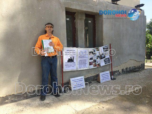 Mod inedit de protest al unui botoșănean originar din orașul Darabani, care a ales să își spună oful și nemulțumirile în fața fostului sediu al Primăriei Dorohoi.