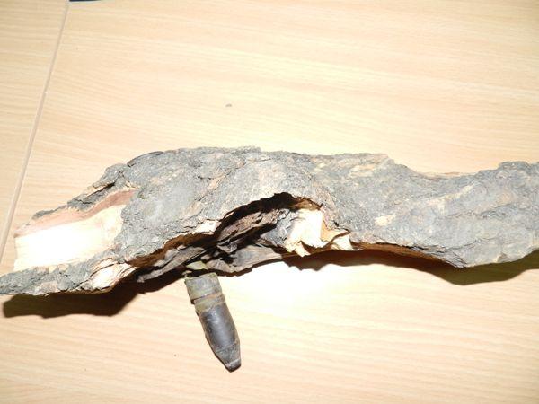 O lovitură de topor a făcut aseară, la Roşiori (comuna Răchiţi), diferenţa dintre viaţa şi moarte. Atât a lipsit ca un localnic, care tăia lemne în gospodărie, să producă explozia unui proiectil încastrat într-un butuc. Lama toporului a secţionat muniţia, între tub şi încărcătură. Dacă lovea cu toporul partea din faţă a proiectilului, putea iniţia explozia.