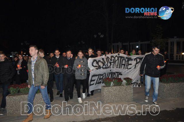 Cei aproximativ 500 de oameni participanți la eveniment au aprins lumânări și au mers într-un marș al tăcerii, cu lumânări în mâini și cu un banner pe care scria „SOLIDARITATE PENTRU ETERNITATE #COLECTIV”. Alături de participanți au fost și Dorin Alexandrescu, primarul municipiului Dorohoi și Lucian Topalagă, viceprimarul municipiului Dorohoi.