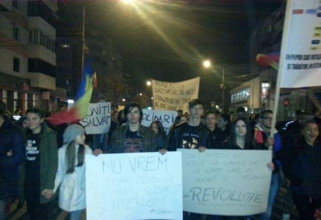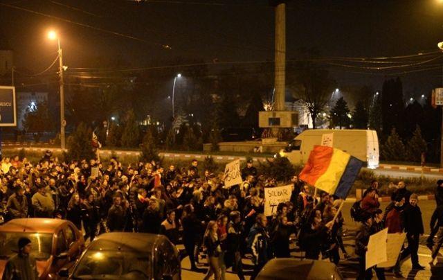 În jurul orei 19.30, aproximativ 400 de persoane au pornit într-un marş pe străzile oraşului pe traseul strada Cuza – Vodă – Marchian - Calea Naţională - Cuza Vodă - Primărie. „Nu vă fie frică, poporul se ridică", „Ieşiţi din case, dacă vă pasă", „Ale, ale, ale, o dorinţă sinceră, România liberă", „PNL şi PSD, aceeaşi mizerie", scandează manifestanţii.