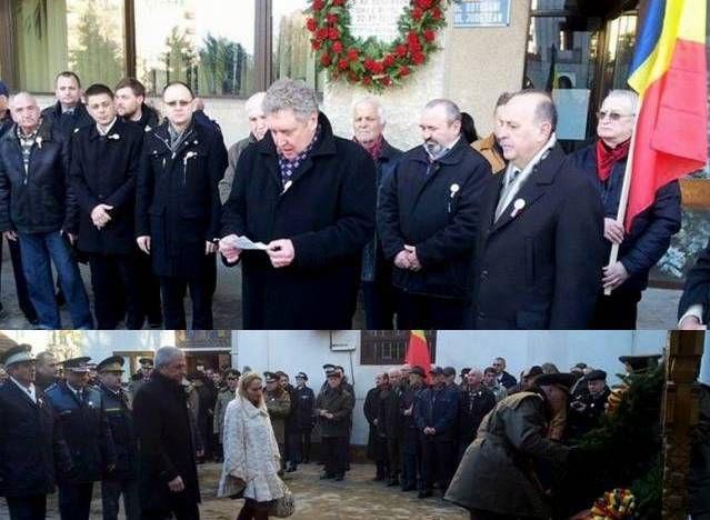 Manifestările au fost închise cu depunerea de coroane şi jerbe de flori în acordurile Imnului Eroilor, la troiţa din curtea bisericii.