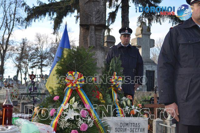 Eroii revoluţiei din 1989 au fost comemoraţi marți, 22 decembrie 2015, la Dorohoi prin depuneri de coroane la mormântul eroului Sorin Dumitraș, împușcat în 22 decembrie 1989. După oficierea slujbei religioase, au depus coroane reprezentanţi ai Primăriei, Poliţiei şi Asociaţiei 22 decembrie.