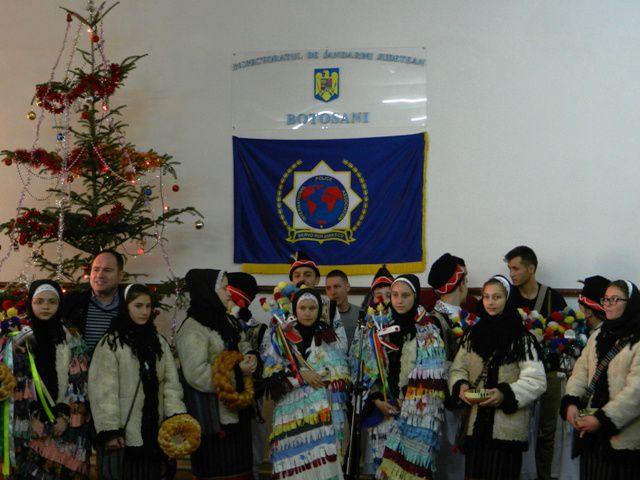 Pentru aceasta, jandarmii botoşăneni şi-au adus copiii la sediul inspectoratului, unde ansamblul „Poieniţa” a prezentat, ca în fiecare an, ceea ce ştie mai bine – frumoasele colinde româneşti, căiuţii, ursul şi caprele.