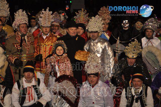 Frumoși constumați, cu o coregrafie bine pregătită și urături personalizate, grupurile organizate au încântat publicul dorohoian și oficialitățile locale cu datinile și obiceiurile specifice momentului și zonei.