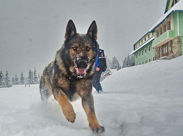 Animalele selecţionate pentru domeniul montan urmează Cursul de iniţiere a câinilor în specialitatea căutare-salvare în mediul natural.