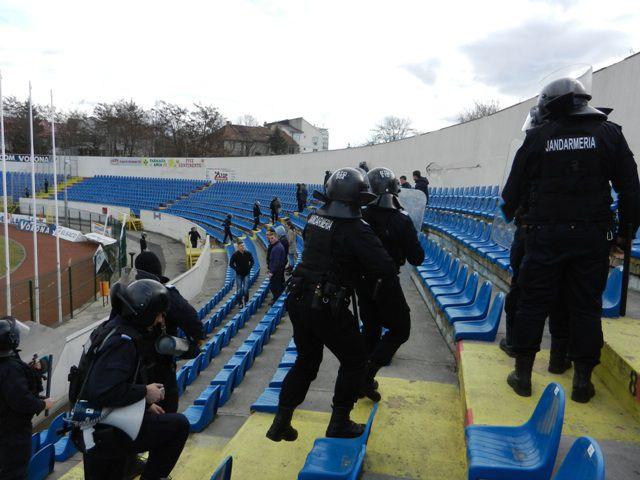 Inspectoratul de Jandarmi Judeţean Botoşani a executat astăzi o activitate practică pe Stadionul municipal Botoşani, având ca temă modul de acţiune pentru restabilirea ordinii şi liniştii publice. La exerciţiu au participat efective ale I.S.U.J. Botoşani, Poliţiei Locale Botoşani şi ale firmei de securitate care asigură măsuri de ordine în interiorul arenei sportive, cu ocazia desfăşurării meciurilor de fotbal ale F.C. Botoşani pe teren propriu.