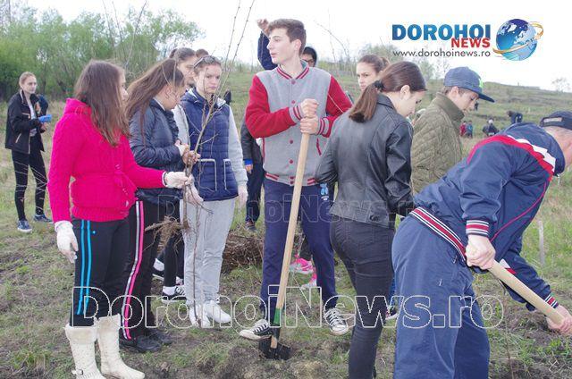 Sute de tineri din Dorohoi au participat sâmbătă, 16 aprilie 2016, începând cu ora 09:00, pe Dealul Polonic din Dorohoi, la o nouă campanie de plantare de pomi.
