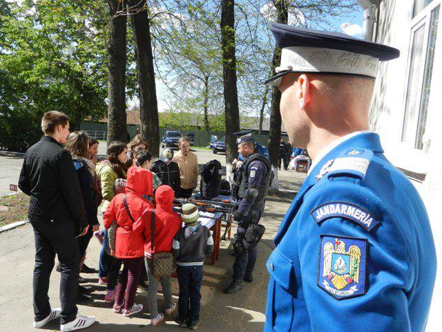 Vizitatorii au făcut un tur al cazărmii, unde au putut vedea dotarea specifică şi autovehiculele cu care oamenii legii execută misiunile specifice, iar elevii din clasele terminale de liceu au primit informaţii privind condiţiile de admitere la Academia de Poliţie „Alexandru Ioan Cuza” şi la şcolile care îi pregătesc pe viitorii subofiţeri jandarmi.