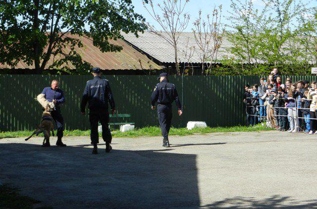 Foarte apreciat a fost momentul în care câinii de serviciu, însoţiţi de conducătorii lor, au prezentat scurte exerciţii demonstrative, cel mai apreciat fiind câinele PIH, alintat cu numele „Ţuţu”, care, pe lângă deprinderile necesare executării serviciului, face pe-a „mortul”, latră la comandă, dă noroc, salută sau execută la comandă alte asemenea „giumbuşlucuri”, spre încântarea copiilor. Imagini de la această activitate au fost postate şi pe „Jandarmeria Botosani” - pagina oficială de Facebook a Inspectoratului de Jandarmi Judeţean Botoşani.