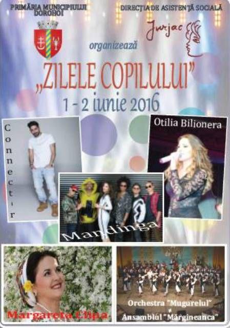 Miercuri 1 iunie şi joi 2 iunie 2016, copiii din Dorohoi se vor bucura de o multitudine de evenimente organizate în cinstea lor.