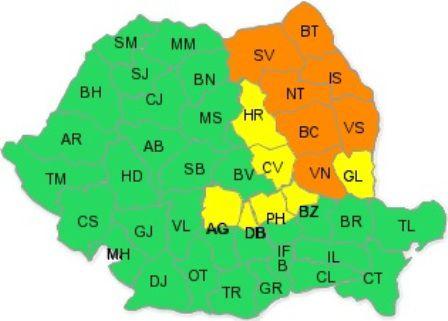În intervalul menţionat în judeţele Botoşani, Vrancea, Bacău, Vaslui, Neamţ, Iaşi, Suceava, ploile vor avea caracter torenţial şi se vor depăşi local 50 l/mp şi izolat, mai ales în zona de munte, 80... 100 l/mp.