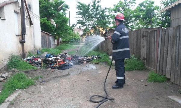 Panică într-un bloc de garsoniere în această dimineaţă, după ce bunurile dintr-o magazie amenajată într-un luminator, la etajul II, au luat foc.