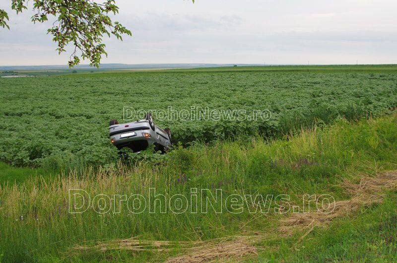 O tânără șoferiță a ajuns la spital, după ce mașina pe care o conducea s-a răsturnat pe drumul DN 29B Dorohoi - Botoșani.