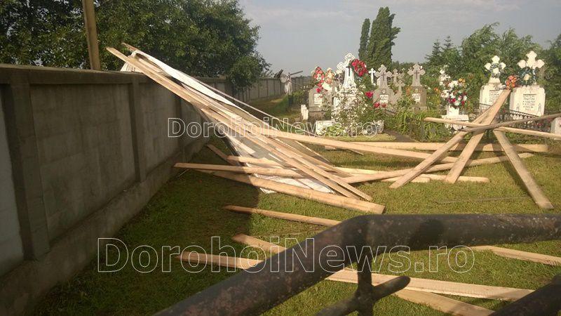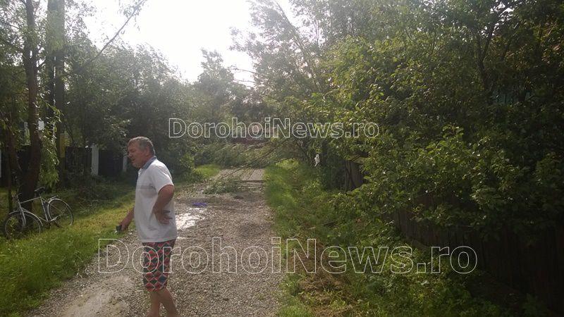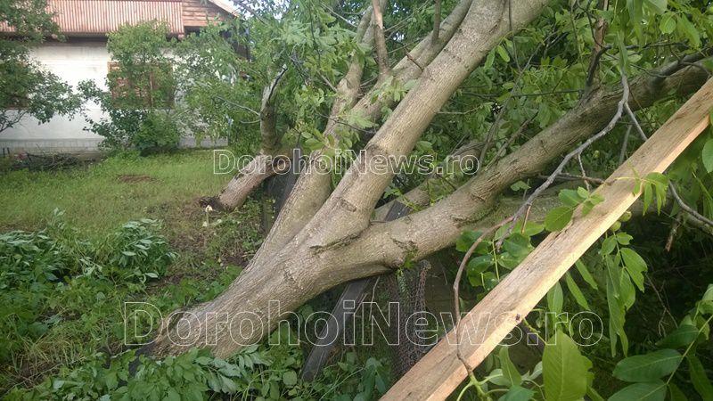 În satul Sinăuţi copaci, garduri, acorperişuri, totul a fost luat de vânt. Autorităţile locale au solicitat, luni dimineaţă, ajutorul pompierilor pentru a strânge şi evalua pagubele furtunii.