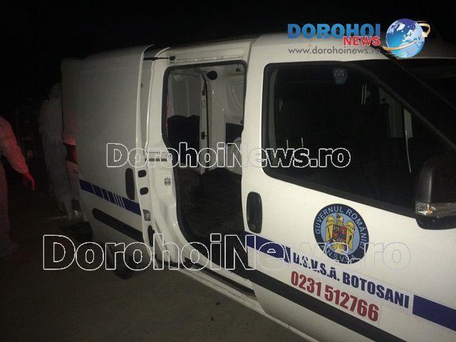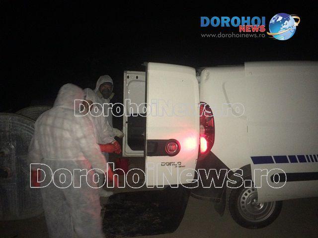 După aproximativ o oră, la fața locului a fost trimisă o mașină de la Direcția Sanitară Veterinară și pentru Siguranța Alimentelor Botoșani care a preluat cadavrul de porc mistreț și a dezinfectat zona cu soluții speciale.