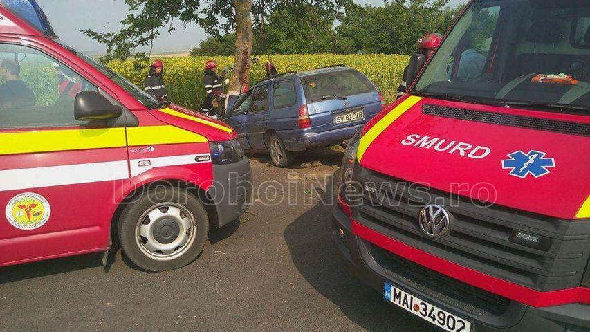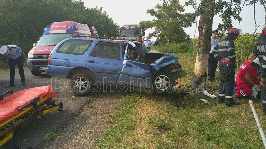 Văculești. Șoferul, un tânăr de 23 de ani, Simion S., aflat la volanul unui Ford Escort, înamtriculat în județul Suceava, se deplasa dinspre Botoșani spre Dorohoi, în mașină cu acesta fiind și o familie, cu un copil de un an. La ieșirea din Văculești autoturismul a părăsit partea carosabilă, după ce se pare că șoferul a adormit la volan, și s-a izbit violent într-un copac de pe marginea drumului.
