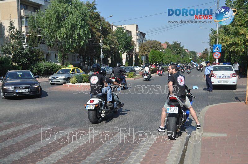 Dorohoienii s-au putut bucura sâmbătă, 3 septembrie 2016, de o impresionantă paradă a motocicliștilor la care au participat aproximativ 50 de motoare.
